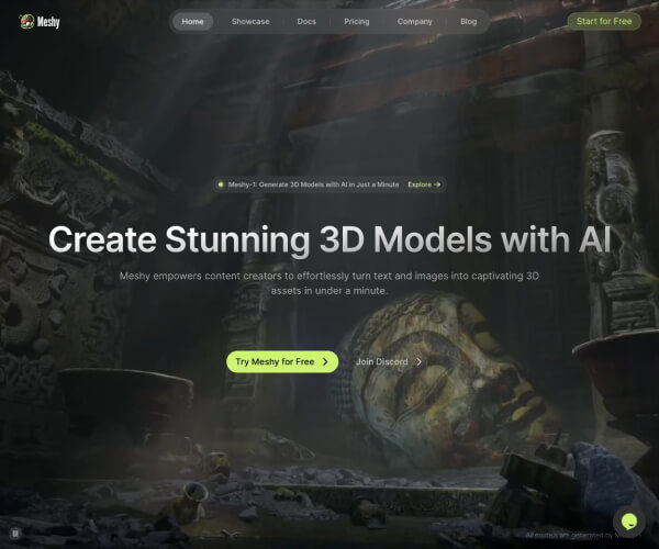 Meshy提供免费积分,用户每月可获得200积分,分享创建的3D作品到Discord也能额外获得最高200积分。